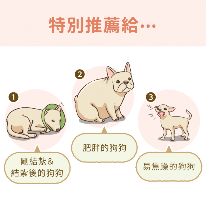 ☑全齡犬 ☑絕育犬 ☑易焦躁緊張犬