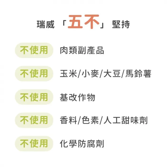 瑞威寵糧中約95%左右的原料經水解程序。其中,將較可能引起過敏反應的動物性蛋白會水解至五千道耳吞以下,免疫細胞對小分子蛋白比較友善,較不容易發動攻擊、引起過敏反應。