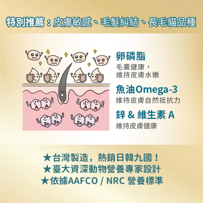 ▹ 優先推薦 皮膚敏感 或 毛色不均、糾結乾癟 的全齡貓