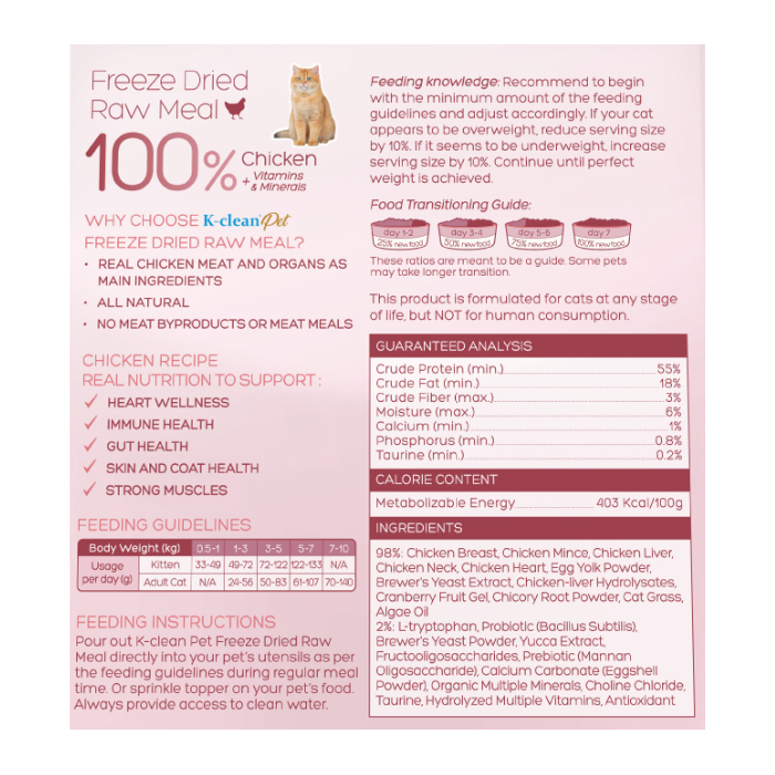 新品上架 - K-clean Pet 全雞🐔生肉凍乾 (貓糧) 60g
