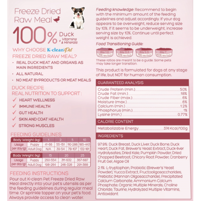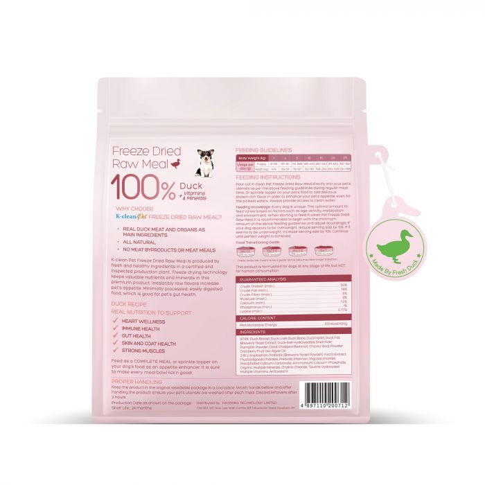 新品上架 - K-clean Pet 全鴨🦆生肉凍乾 (狗糧) 300g