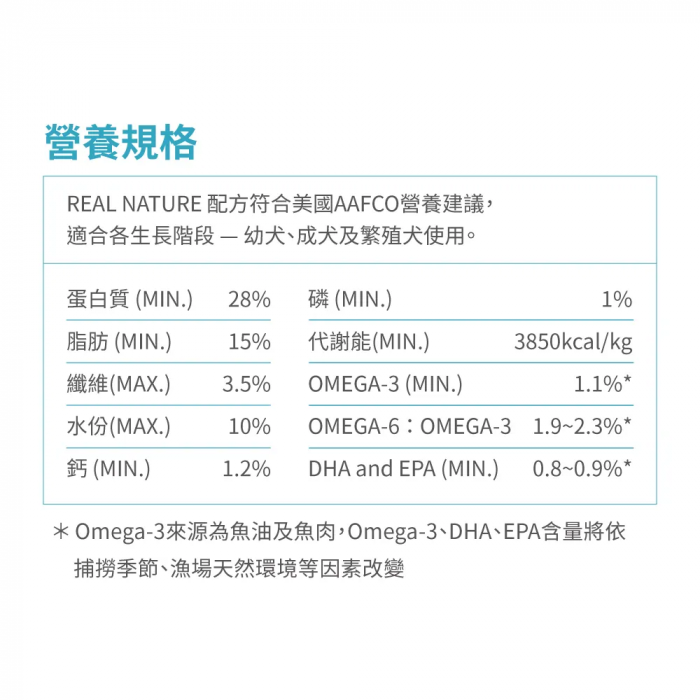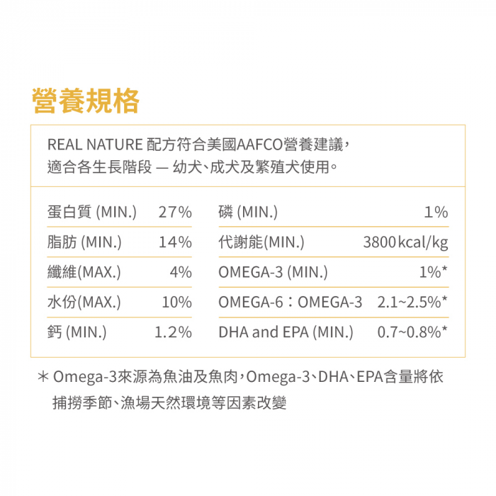 ▹ 本產品營養標示項目符合美國AAFCO營養建議,提供幼犬維持每日所需之營養標準